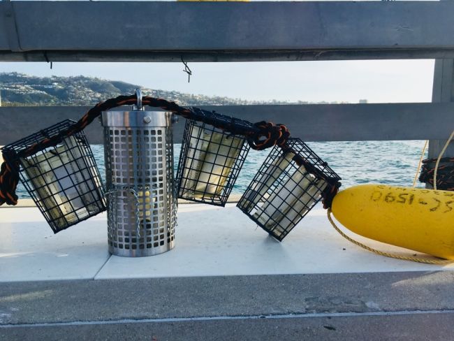Thiết kế lồng được sử dụng cho thí nghiệm dưới đáy biển diễn ra ngoài khơi Bến tàu tưởng niệm Ellen Browning Scripps tại Viện Hải dương học Scripps năm 2019. Ảnh: Sarah-Jeanne Royer
