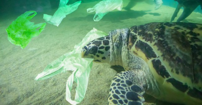 Đáng buồn thay, một con rùa có thể dễ dàng bị nghẹn khi dùng túi nhựa có thể phân hủy được rải rác như túi nhựa thông thường.